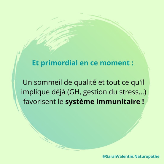Saviez-vous que la nuit nous sécrétons l'Hormone de Croissance (GH, pour Growth Hormone in English). Enfant, elle nous permet notamment de "grandir" en favorisant le développement des organes du corps. Adulte, elle permet surtout la réparation cellulaire, le développement des muscles, une meilleur gestion des graisses (elle est plus efficace d'un régime!), ainsi que des sucres (important ++ en cas de diabète) et participe à réduire la rétention d'eau... et primordial en cette période : un sommeil de qualité et tout ce qu'il implique (GH, gestion du stress...etc.) favorisent le système immunitaire !